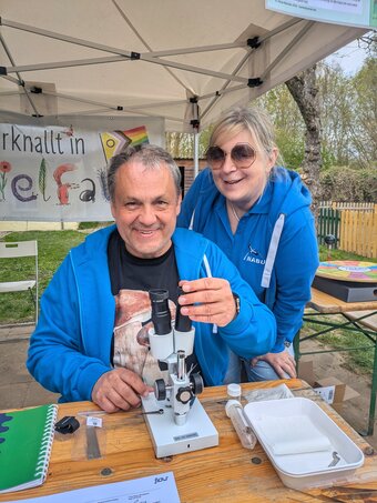Besondere Aufmerksamkeit erregte das Mikroskopieren von Makrozoobenthos-Präparaten, womit wir auf das Citizen-Science-Projekt FLOW aufmerksam machten, an dem unser Verein sich aktiv beteiligt.